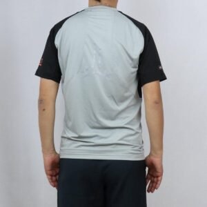 100% Polyester Round Neck Light Gray with Silver/Black and Orange logo prints