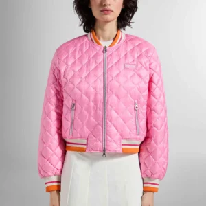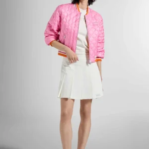 Short ultralight puffer jacket in water-repellent nylon featuring contrast colors and the Duvetica logo. SCAGLIA is a women’s bomber jacket decorated by diamond quilting and colorful ribbed edges. The double-slide zip and the convenient lateral pockets secured by zips complete its design.