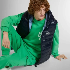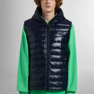 Ultralight garments with contrast details that get noticed: in water-repellent nylon with a logo detail, Duvetica has designed its men’s puffers to embody practicality and street style. MILODI is a men’s vest decorated by horizontal quilting and closed by a double-slide full-zip fastening that extends up the hood. It’s completed by contrast fabric lining, and convenient zip pockets at the sides.
