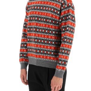Kenzo crew neck sweater in pure wool with all-over jacquard motifs. Ribbed edges, regular fit. The model is 187 cm tall and wears a size L.