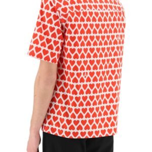 Cotton poplin short-sleeved shirt by Ami Alexandre Mattiussi, decorated with all-over heart motif. Breast patch pocket, Cuban collar, side small slits. Straight and slightly boxy cut. The model is 187 cm tall and wears a size 40.