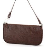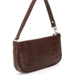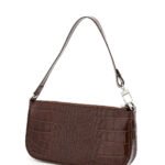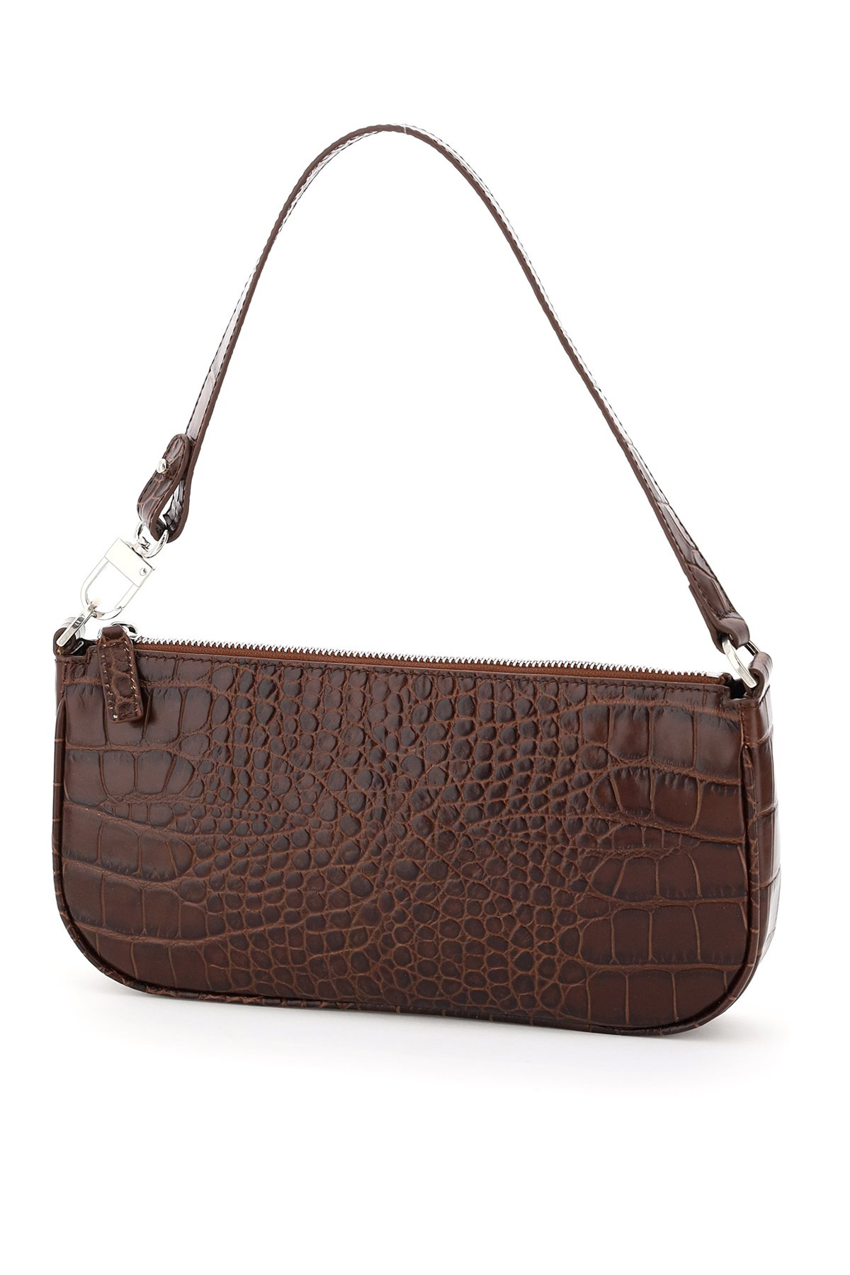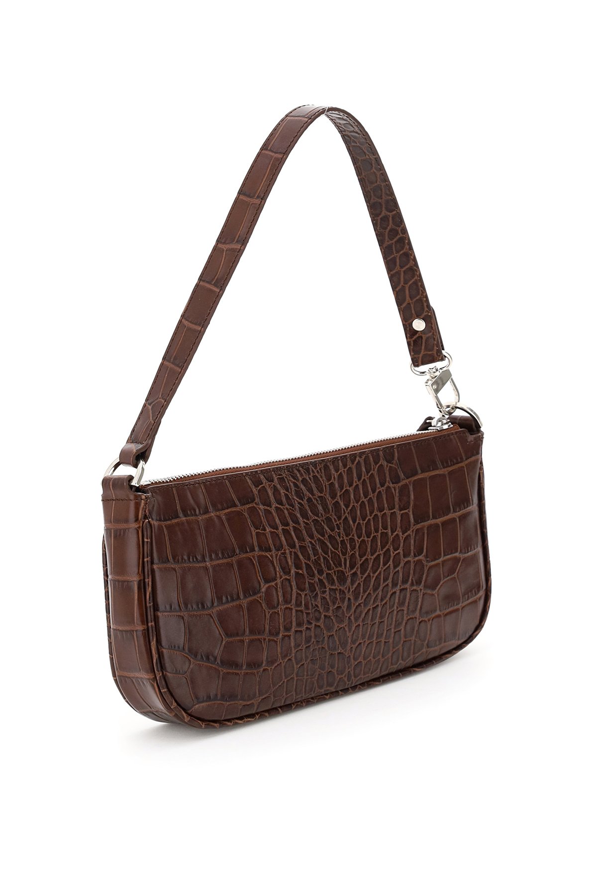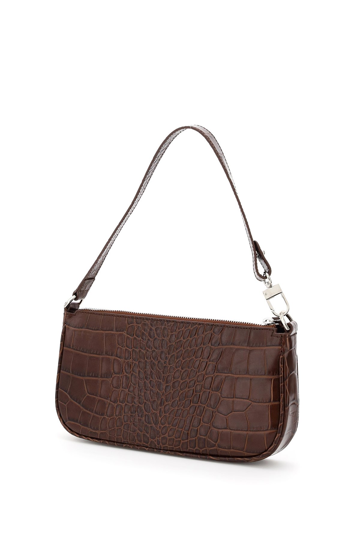 By Far Rachel baguette bag in crocodile-embossed leather with side metal snap hook on the handle. Zip closure, cotton lining. Silver-tone metalware.