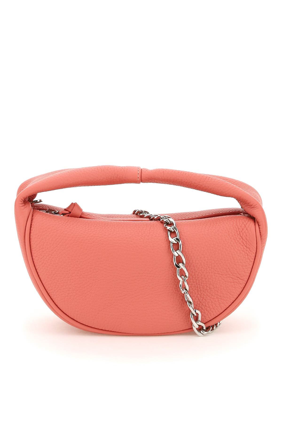 By Far Micro Cush mini bag    made of soft grained leather with low handle another chain to be worn on the shoulder. Zippered closure. Fabric interior with contrasting logo patch. Silver-finish metalware.