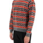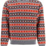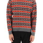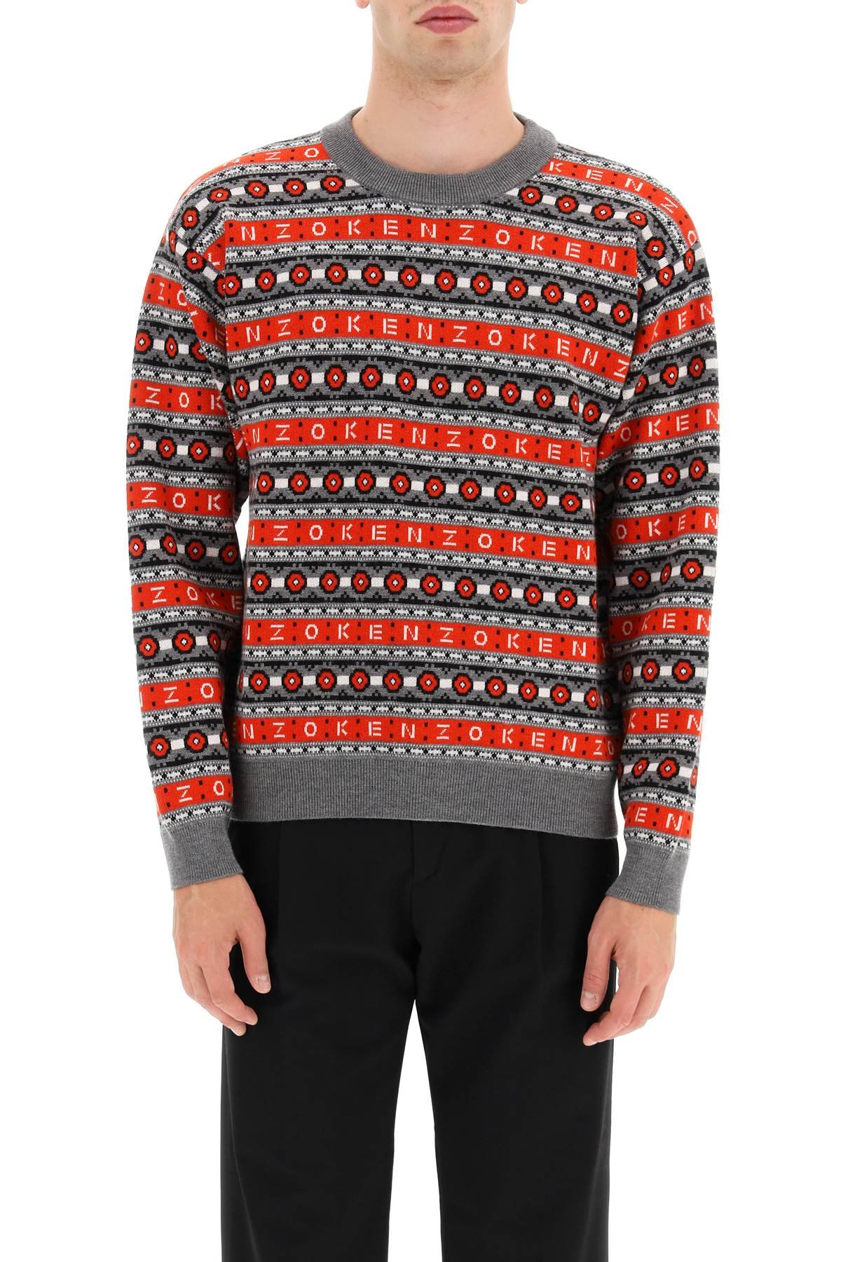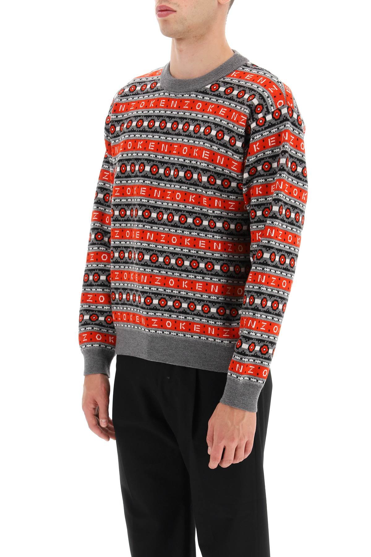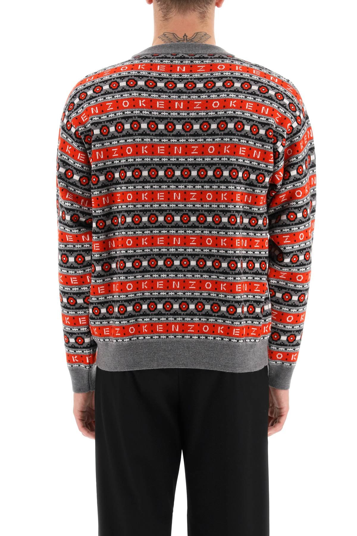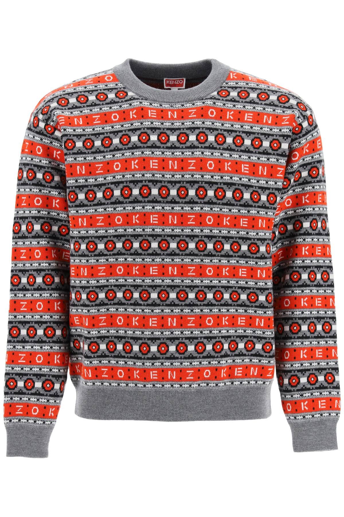 Kenzo crew neck sweater in pure wool with all-over jacquard motifs. Ribbed edges, regular fit. The model is 187 cm tall and wears a size L.