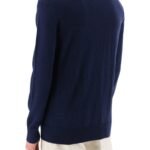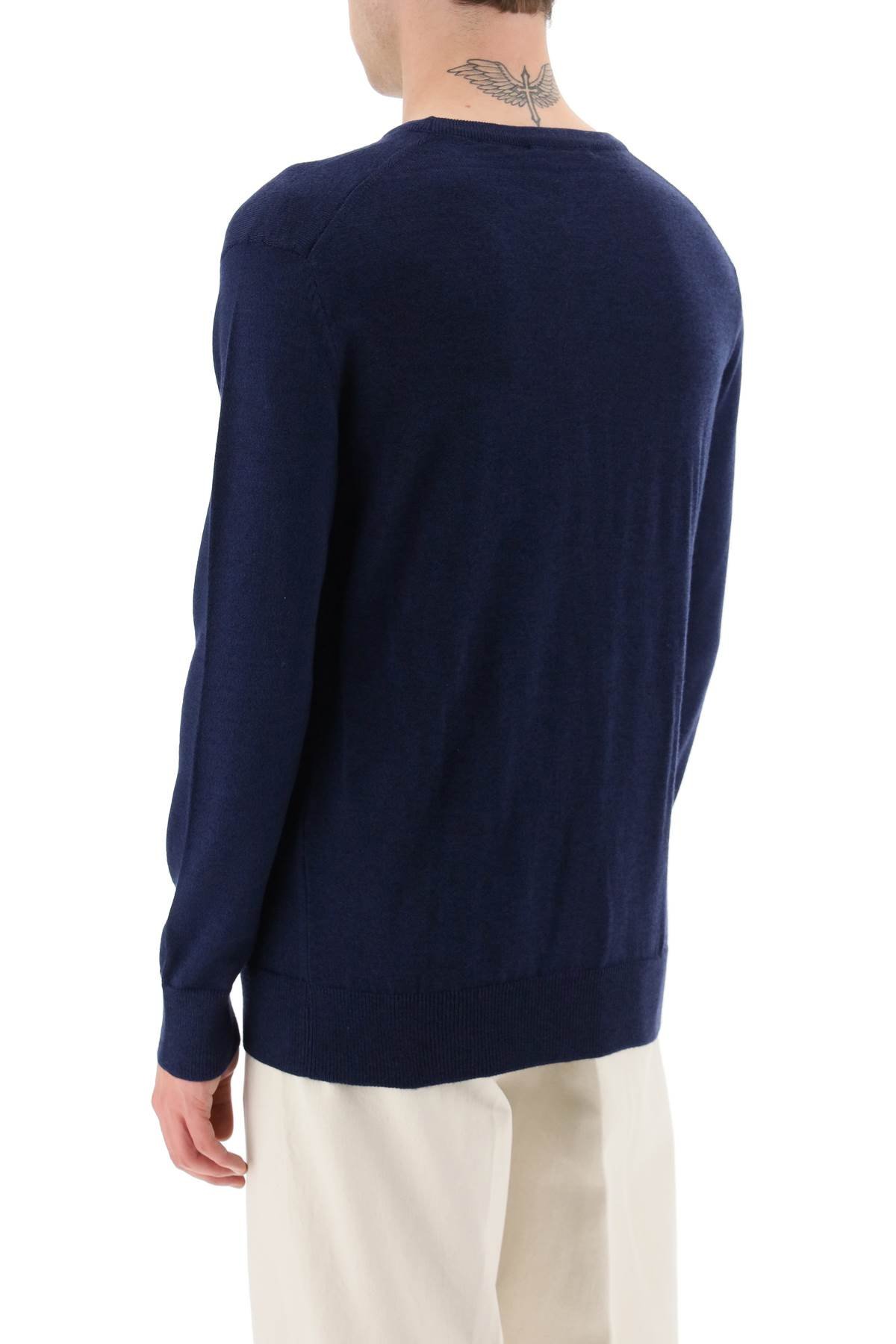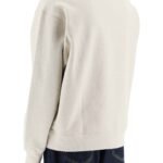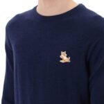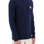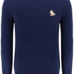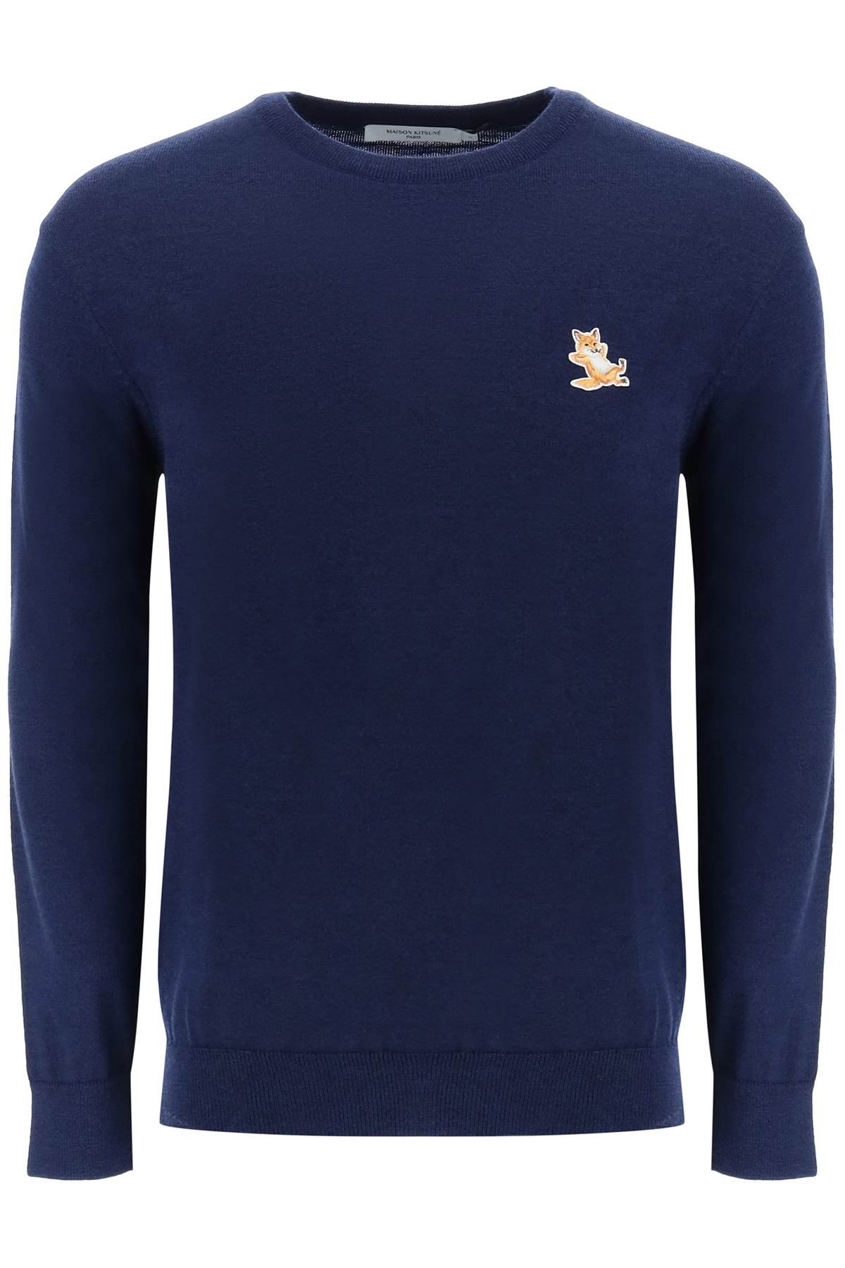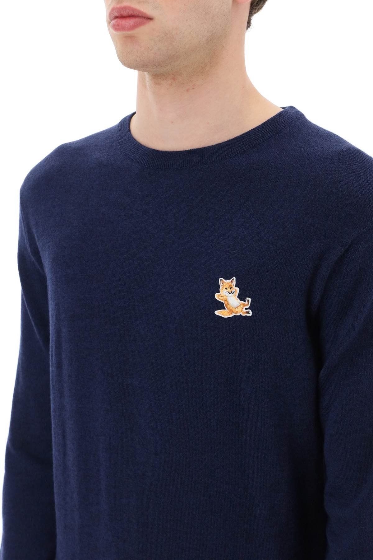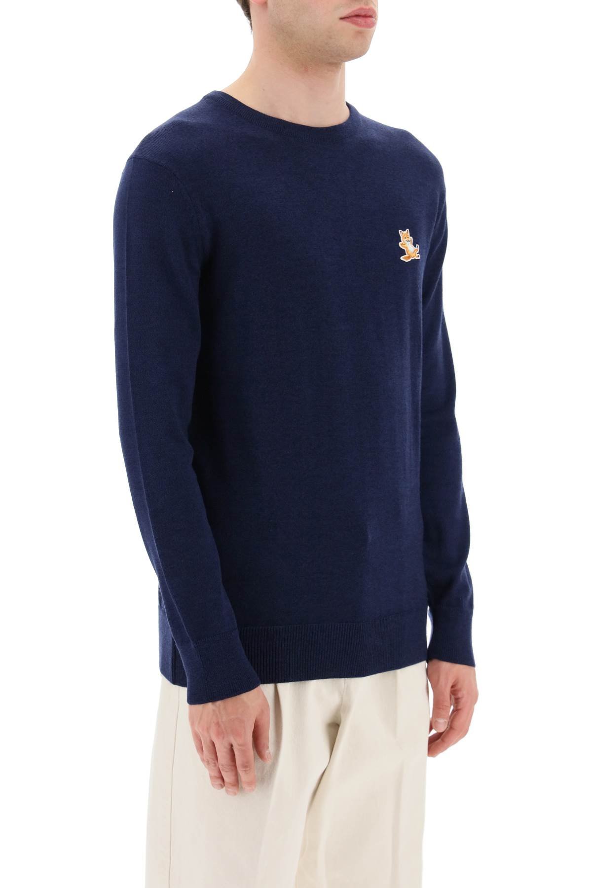 Maison Kitsuné crewneck sweater in soft wool yarn, enriched by the iconic embroidered Chillax Fox patch on the chest. Straight and loose cut, ribbed edges. The model is 187 cm tall and wears a size L.