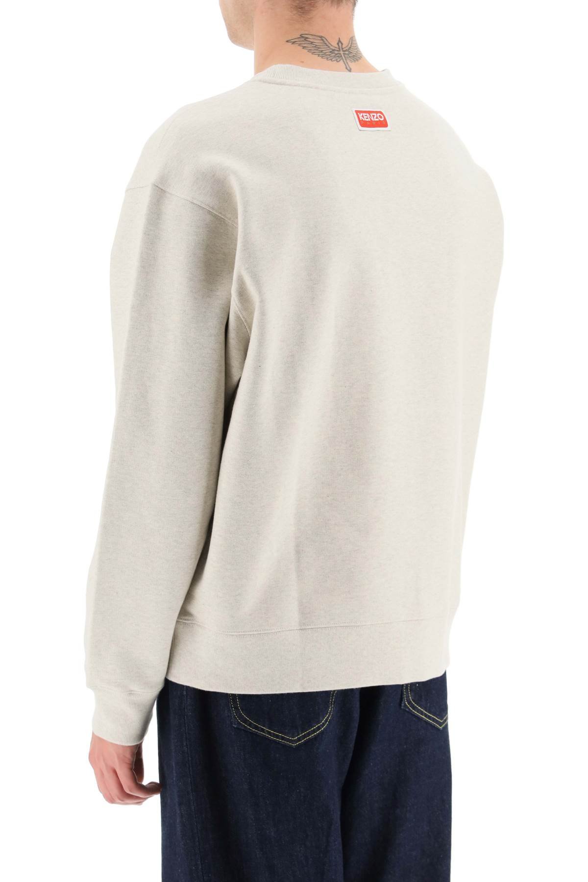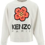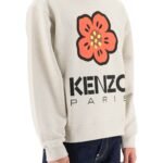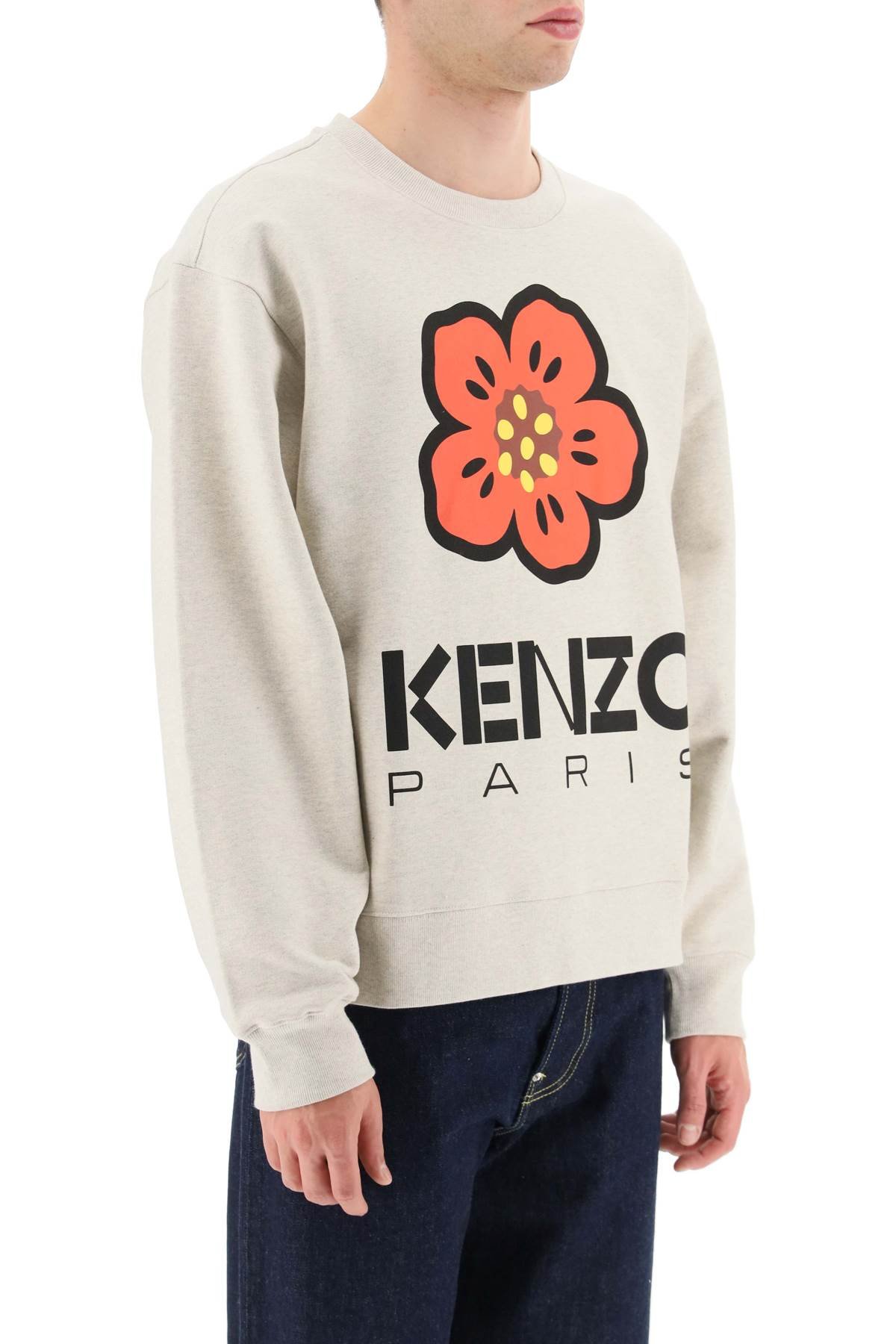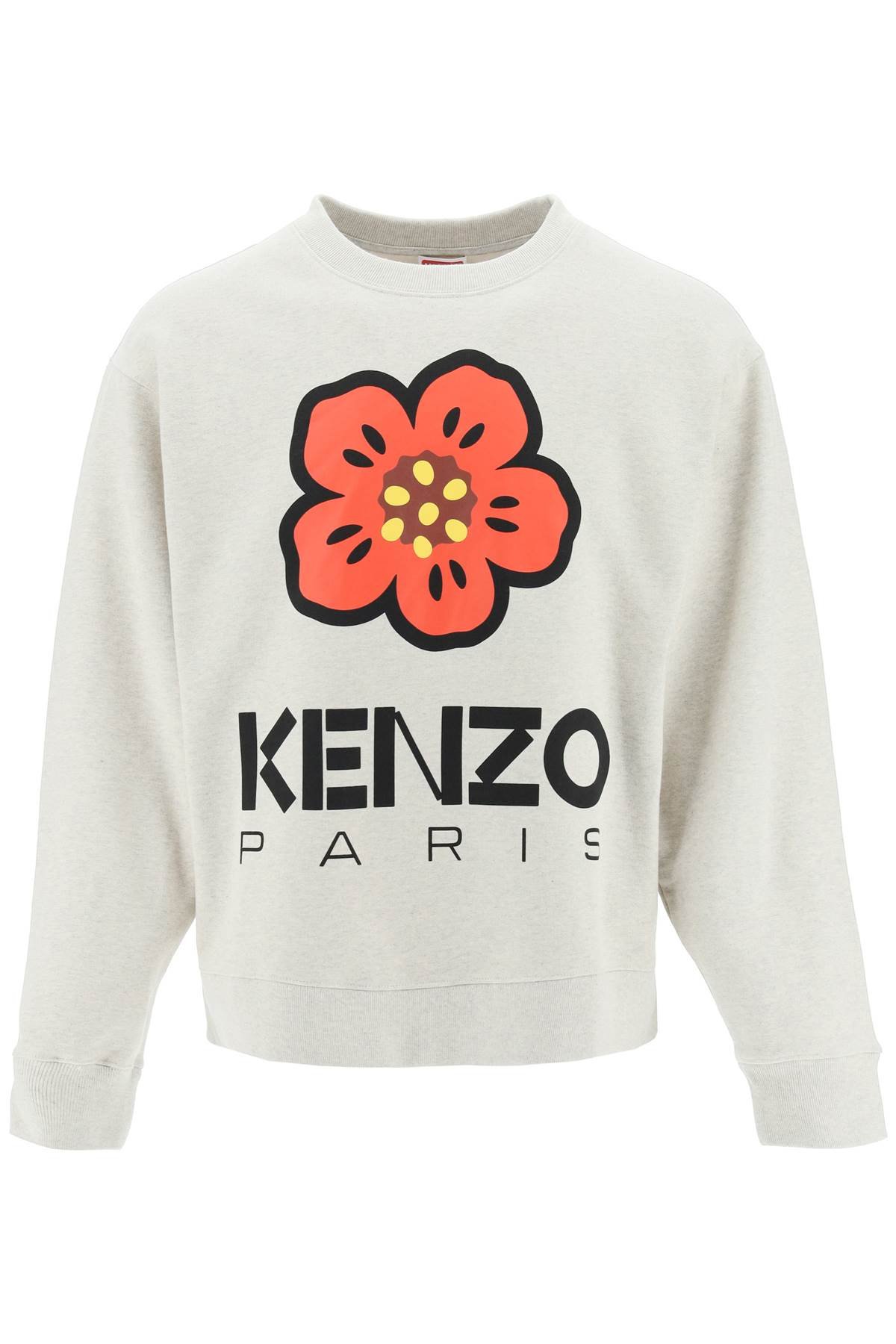 Kenzo crewneck sweatshirt crafted in fleece-back cotton jersey, featuring  "BOKE FLOWER" and lettering logo print on front. Micro ribbed egdes. Logo patch on the back on neck. Relaxed fit. The model is 187 cm tall and wears a size L.