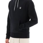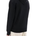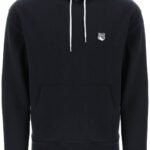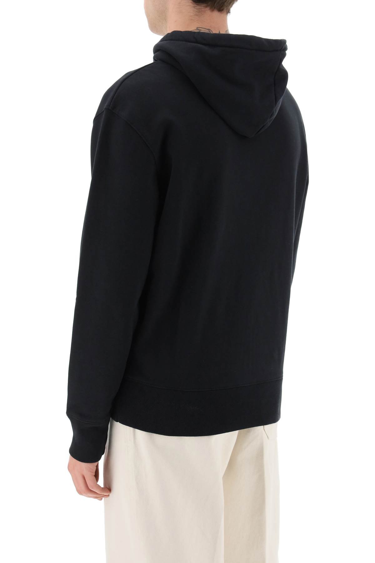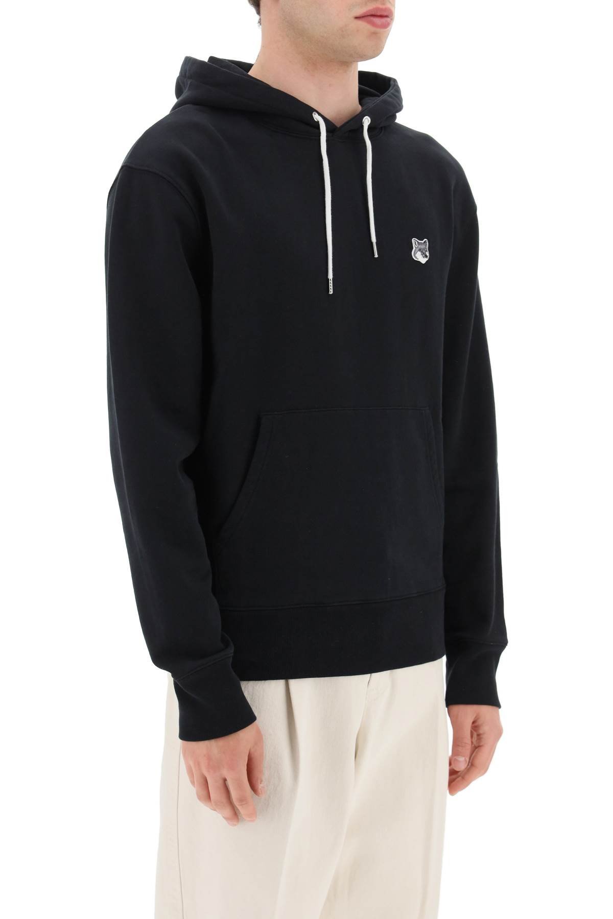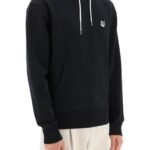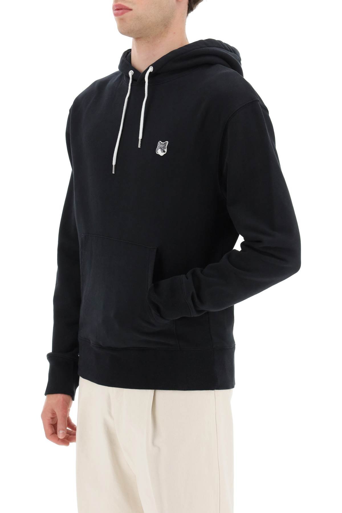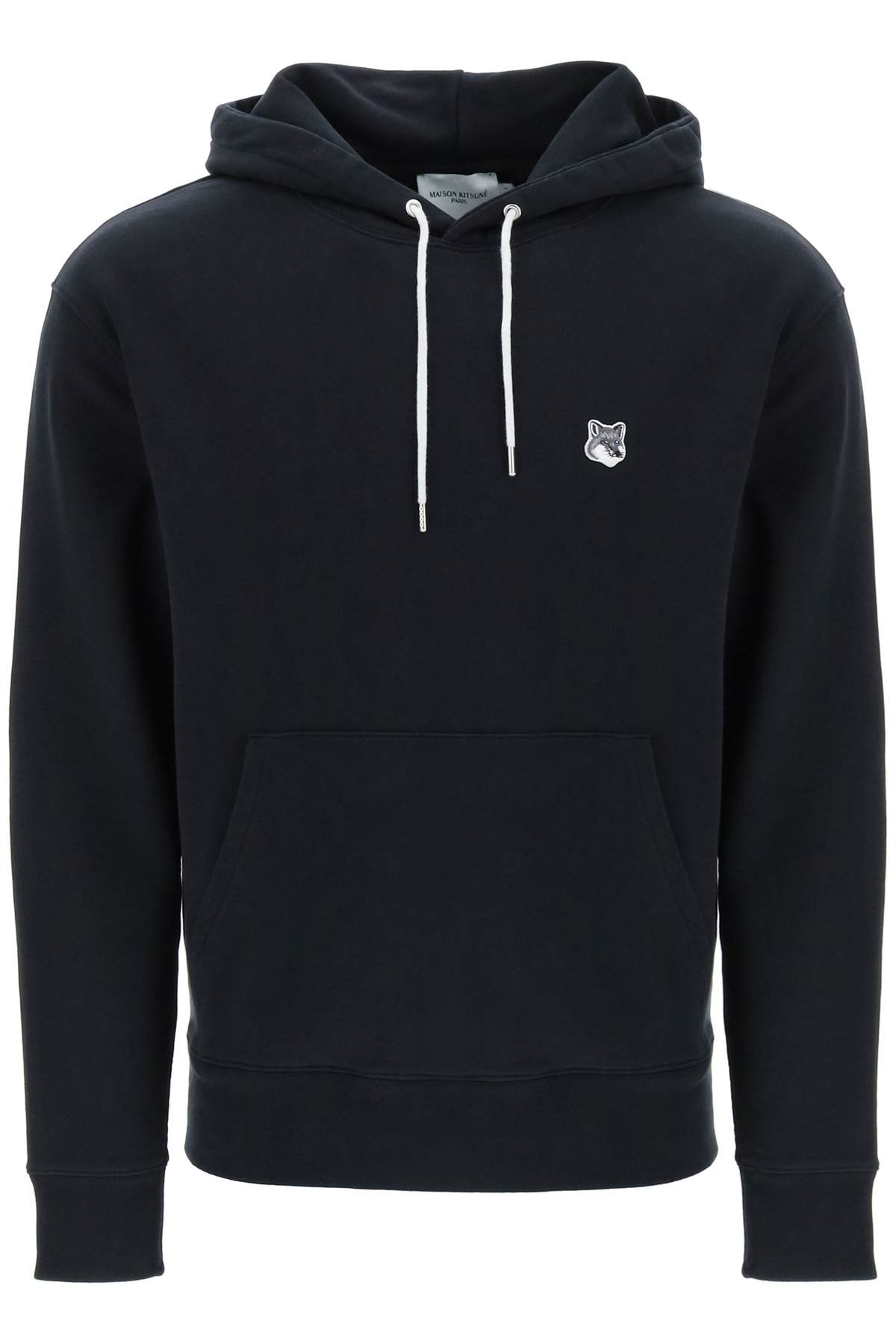 Maison Kitsuné regular-fit sweatshirt in loopback cotton jersey, detailed with signature Grey Fox Head patch on the chest. It features a drawstring hood and a kangaroo pocket. Ribbed finishes. The model is 187 cm tall and wears a size L.