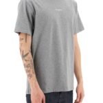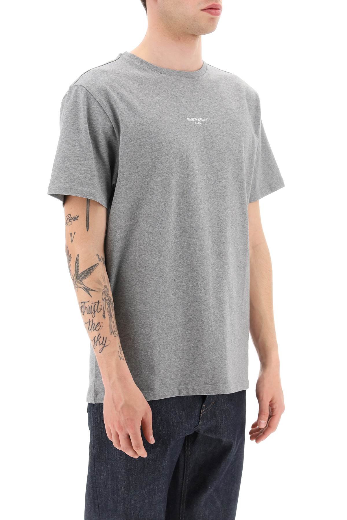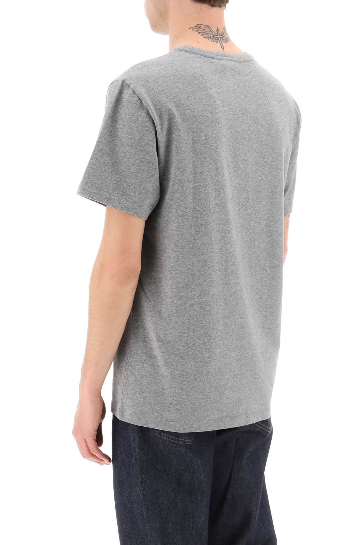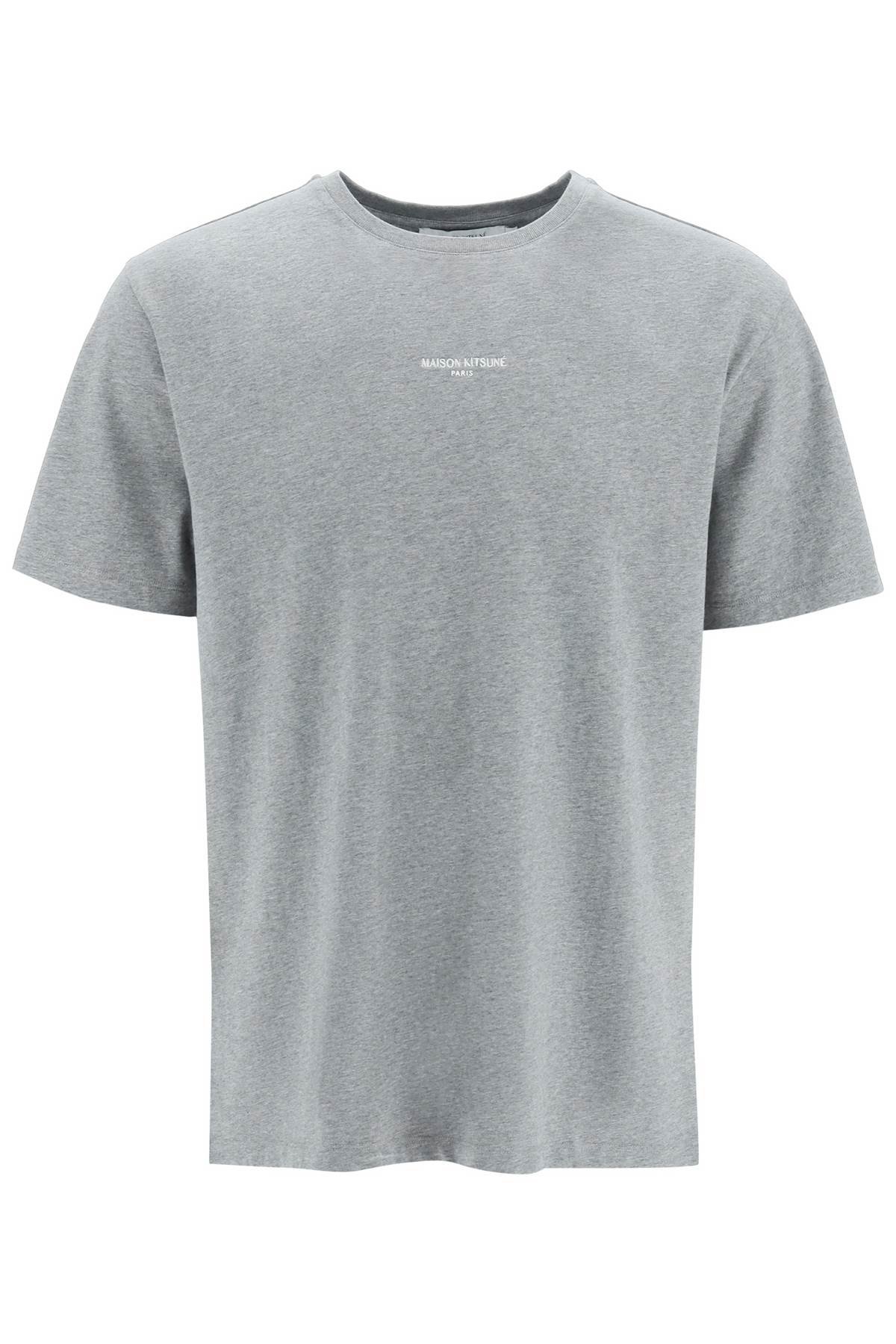 Maison Kitsuné cotton jersey t-shirt featuring ribbed crew-neck and embroidered and rubberized logo detail at chest. Regular fit. The model is 187 cm tall and wears a size L.